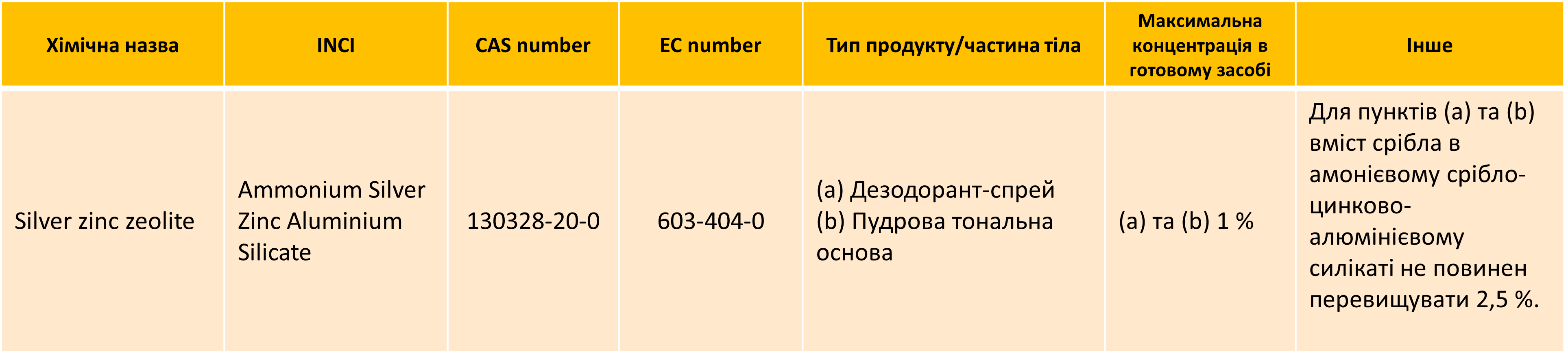 • Додано silver zinc zeolite, за винятком срібло-цинкового цеоліту за умов, викладених у Додатку V.