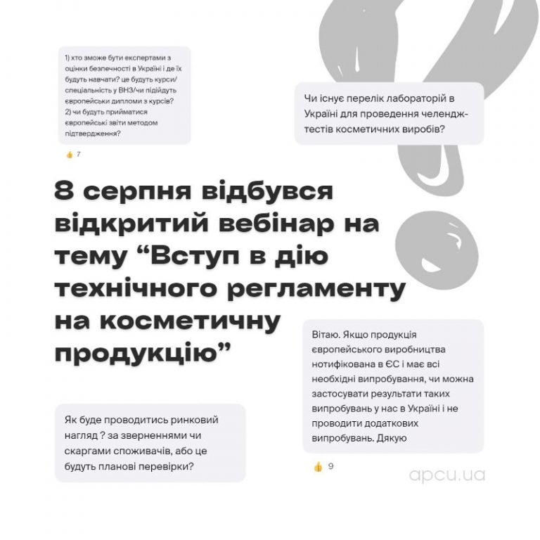 8 серпня відбувся відкритий вебінар присвячений вступу в дію технічного регламенту на косметичну продукцію