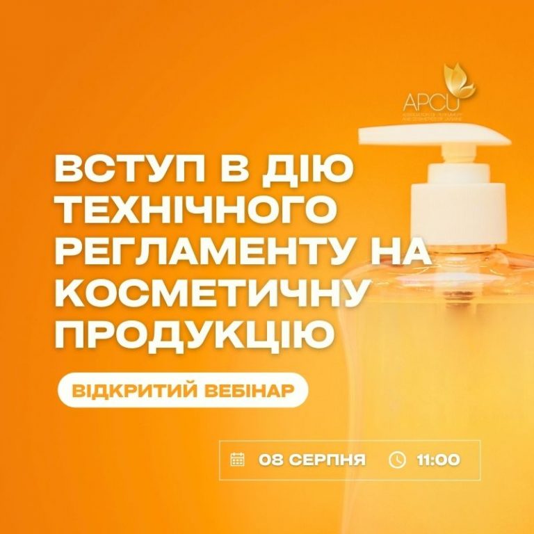 Вже 3 серпня в дію вступає Технічний регламент на косметичну продукцію, у зв’язку з цим Асоціація «Парфумерія та косметика України» організовує відкритий вебінар за участі Міністерства охорони здоров’я України для обговорення змін, що відбудуться у косметичній галузі України та критичних питань імплементації.