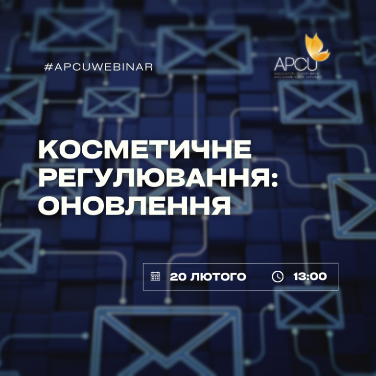 20 лютого о 13:00 Асоціація «Парфумерія та косметика України» організовує вебінар