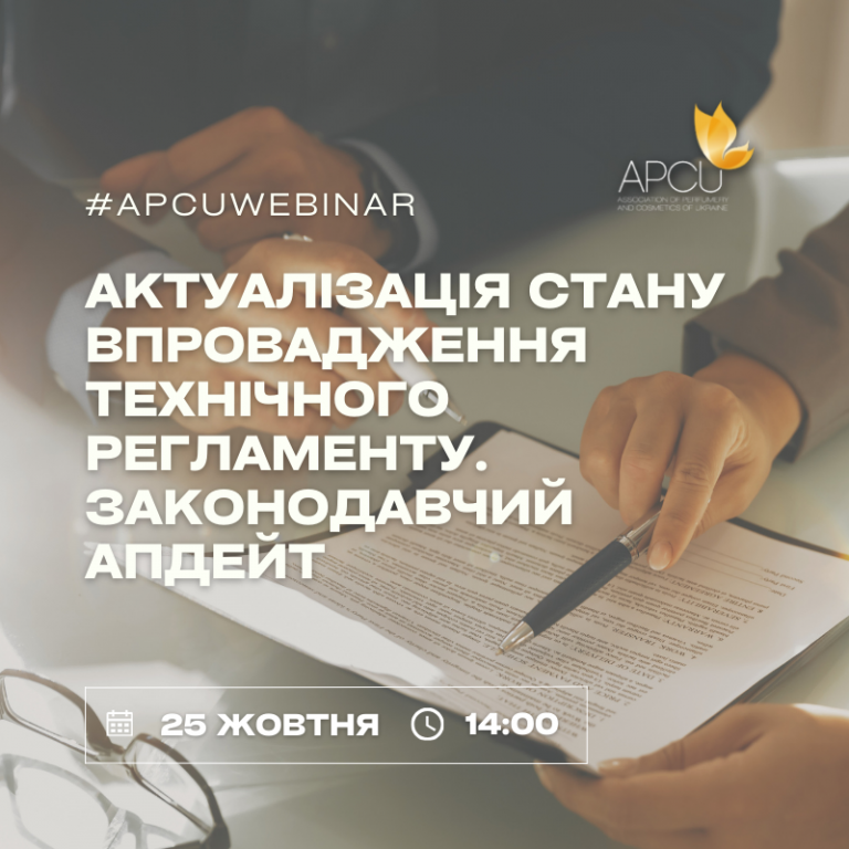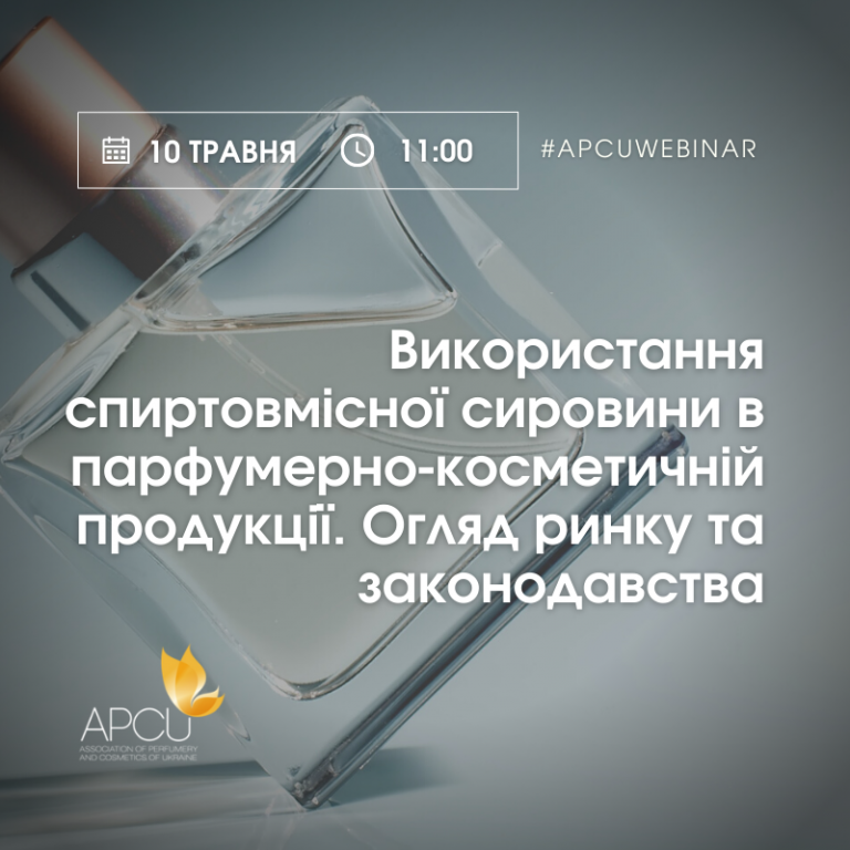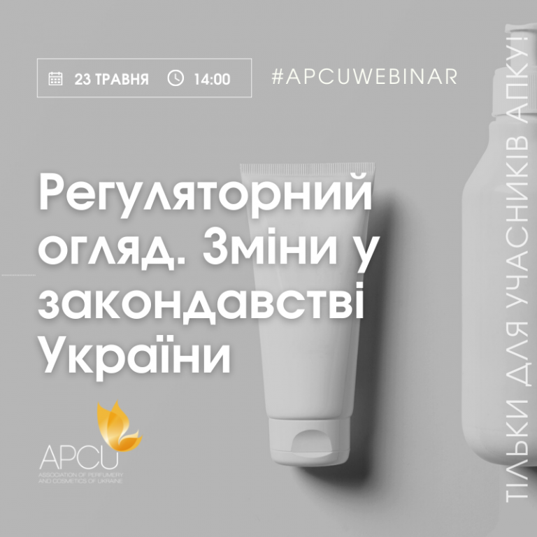 23 травня Асоціація «Парфумерія та косметика України» організовує вебінар на тему: “Регуляторний огляд. Зміни у законодавстві України”