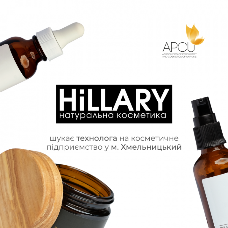 Учасник АПКУ компанія Hillary Cosmetics шукає технолога на виробництво косметичних засобів (з досвідом роботи у розробці доглядової косметики)