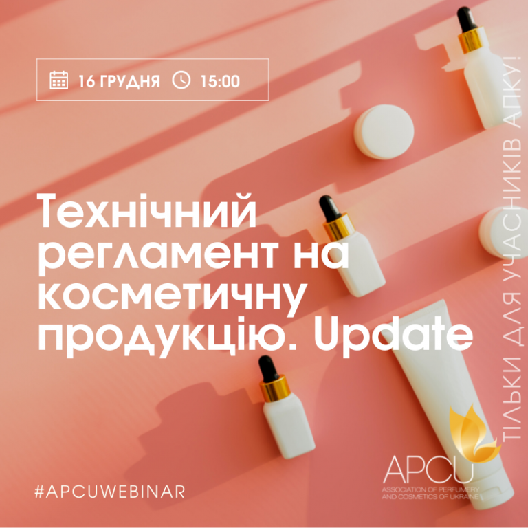 16 грудня Асоціація «Парфумерія та Косметика України» організовує вебінар для учасників АПКУ.